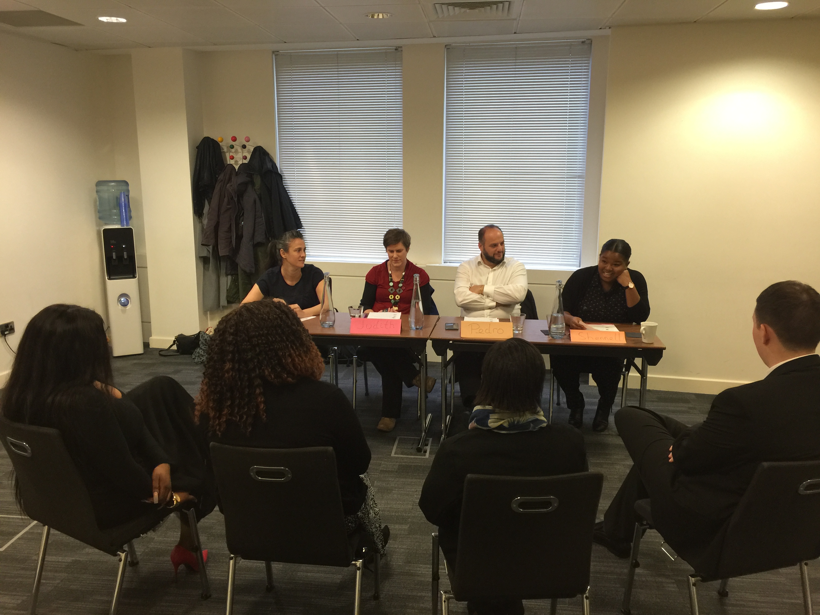 Judges l-r seated are Anna – JobCentre Plus, Judith – Churchill Services, Pedro – Head Judge from Pertemps and Shennell – Growing Talent Ambassador who completed Growing Talent on the 5th programme!